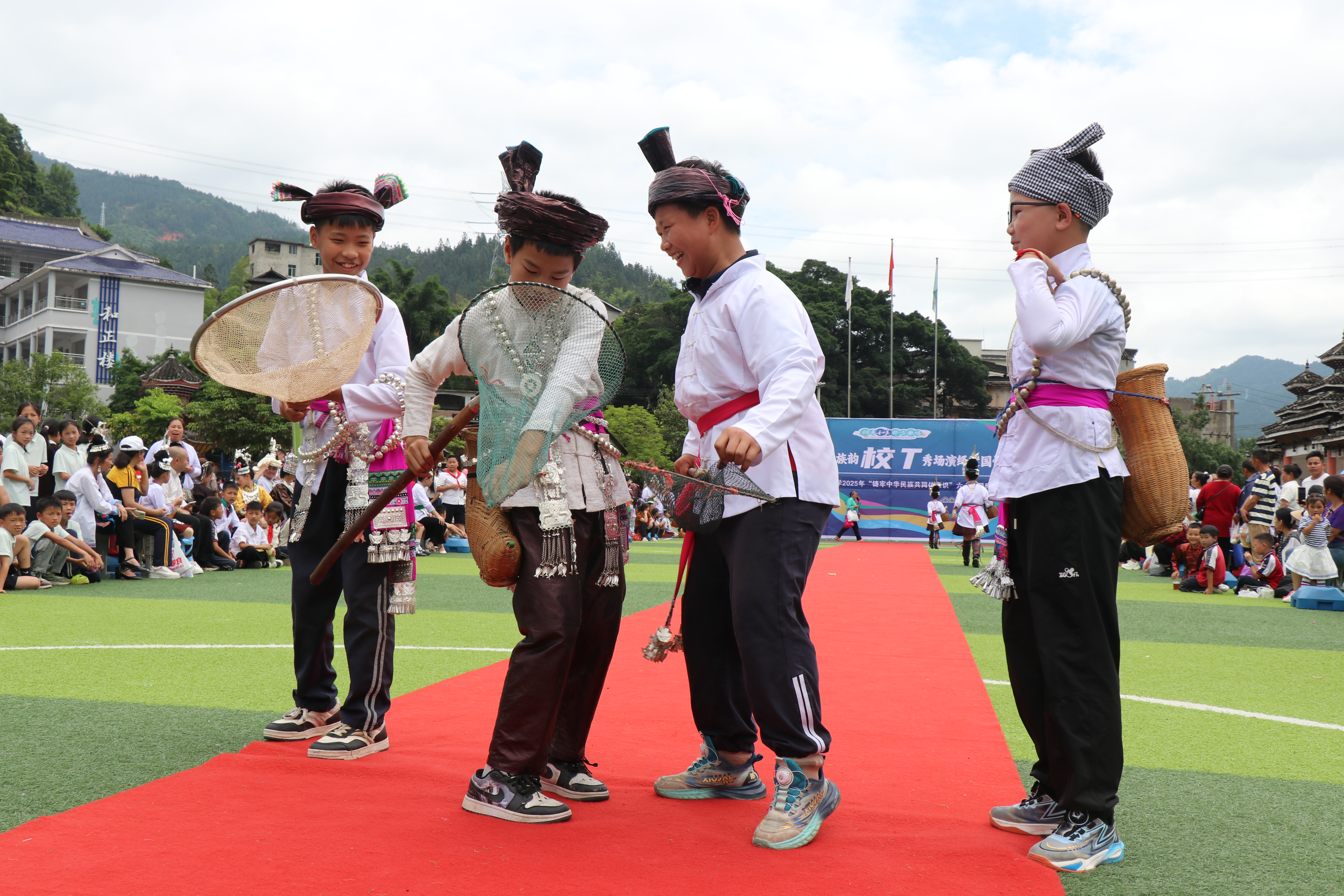 各年级围绕不同民族文化核心,进行了创意主题展演,从一年级至六年级,孩子们以不同的主题展示了苗侗服饰、民族非遗、农耕文化、中华传统、工匠精神、酸汤等多元民族文化展示。
