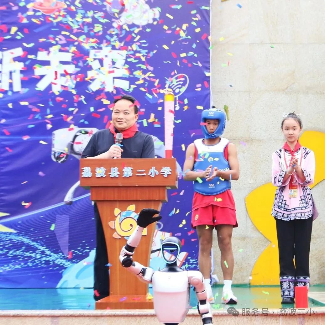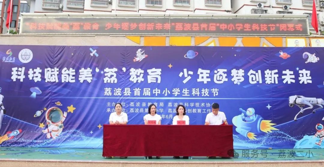 为深入落实《全民科学素质行动计划纲要》,提升全县中小学生科学素养与创新实践能力,点燃学生科学探索热情,贯彻“五育并举”理念,推进校园文化建设,由荔波县教育局、县科协联合主办,荔波县第二小学、县科创教育工作室承办的“科技赋能美荔教育,少年逐梦创新未来”首届中小学生科技节,在二小校园盛大开幕。