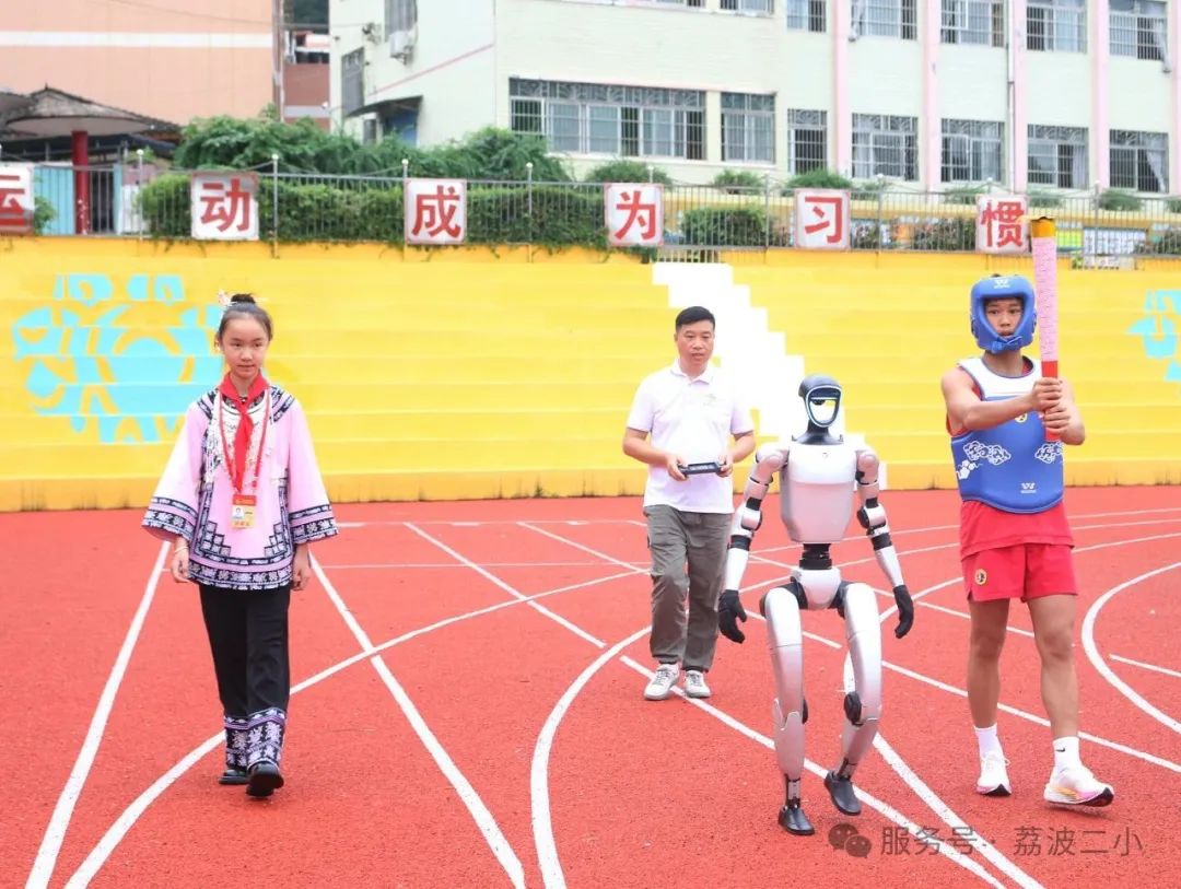 随着县委教育工委副书记、县人民政府副县长卢小泉宣布科技节开幕,绚烂的电子烟花绽放,五彩氢气球缓缓升空,现场节日氛围浓厚。9点30分,全国少先队代表大会代表黄梓睿、全国武术散打冠军朱俊坤与智能机器人携手,点燃象征智慧与希望的火炬,并环绕足球场半圈,赢得现场观众雷鸣般的掌声。