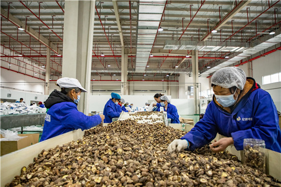 工人们正在分拣香菇