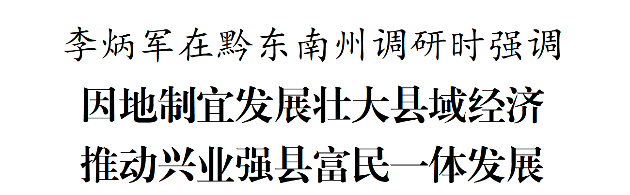 6月15日至16日,省委副书记、省长李炳军到黔东南州凯里市、雷山县调研。他强调,要深入学习贯彻习近平总书记在贵州考察时的重要讲话精神,落实省委十三届七次全会部署,因地制宜发展壮大县域经济,推动兴业、强县、富民一体发展。省领导蔡朝林、李建参加。