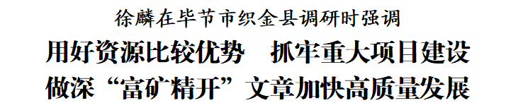 徐麟在调研中强调,要牢记习近平总书记关于坚持以高质量发展统揽全局的殷切嘱托,牢牢守好发展和生态两条底线,加力推进“富矿精开”,持续延长产业链、提高附加值、增强竞争力,不断把矿产资源富集优势转化为产业优势、发展强势。要坚定不移大抓产业大抓项目大抓招商,分类精准指导各地深耕厚植比较优势,着力优化营商环境,谋划实施一批优质项目,招引落地一批优强企业,推动兴业强县富民一体发展,为加快高质量发展提供强有力支撑。