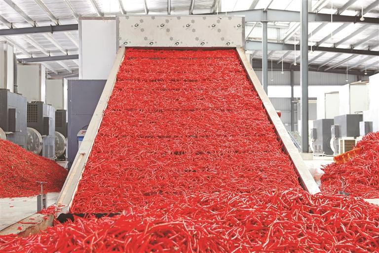 “我们6条烘干线日消耗120吨鲜椒,产出干椒30吨左右。通过引进智能化烘干生产线,不仅提高了生产效率,产品品质也更加稳定。”贵州香辣红农业发展有限公司董事长李德介绍,该公司今年预计将突破150万斤干椒产量。烘干后的辣椒经过分级包装,将直供四川、重庆、湖北等地的食品加工厂。