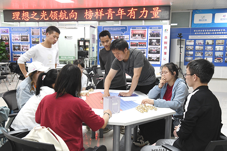 拒绝“硬灌输”,贵阳学院让思政课火爆“出圈”。图为指导老师和同学一起开发战略棋游戏。