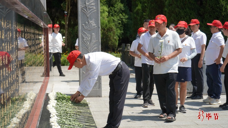 8月28日,金沙县教育系统开展“南渡乌江·红色印记”研学活动。图为向烈士敬献鲜花。(金沙县融媒体中心 供图)