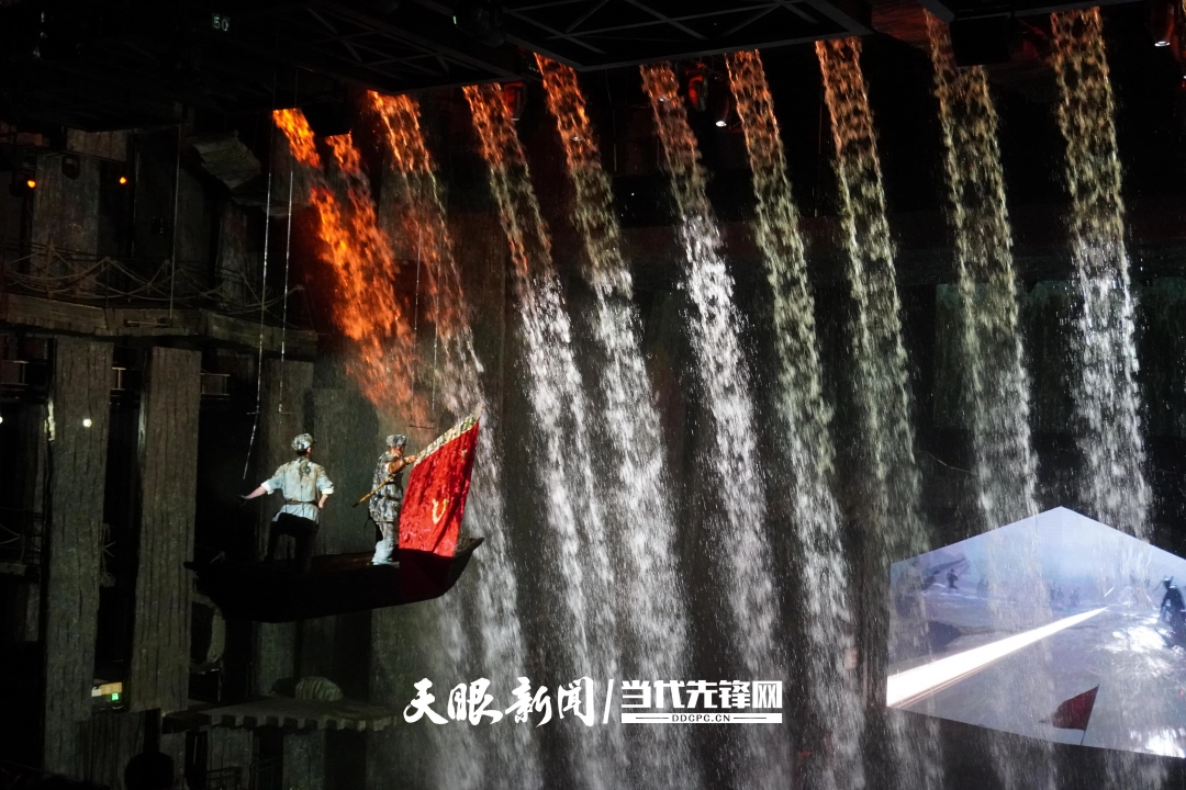 下午两点整,全场观众沉浸式观看大型红色剧目《伟大转折》。七十分钟的演出,以“人、声、光、水、电、影、景”交融的现代舞台科技,再现了遵义会议那段惊心动魄的历史转折,也将红军长征的艰苦卓绝、英雄气概展现得淋漓尽致。许多同学凝神屏息、眼含热泪,仿佛亲历那段用生命书写忠诚的岁月。剧目尾声,灯光渐暗,一场精心编排的“跨时空对话”将气氛推向高潮。