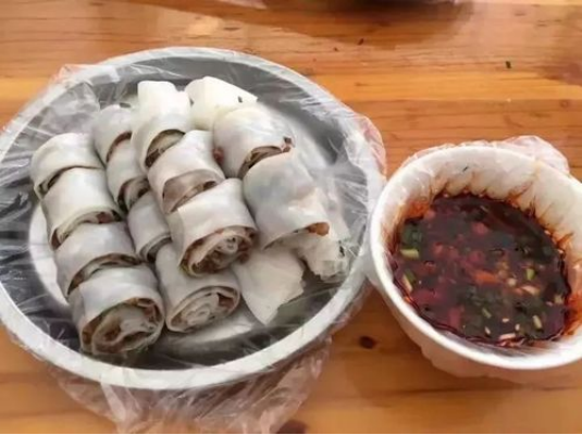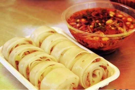 肉卷粉在都匀女人街随处可见,与卷粉有所不同,肉卷粉在卷粉中加入了肉沫、葱花、青辣椒,再与秘制酱料一起食用,美味至极。