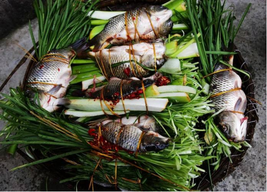 聚居在以黔南布依族苗族自治州的三都水族自治县为中心及其邻近地区的水族人民,在长期的历史发展过程中,逐步形成了喜食糯米食品、喜食鱼、喜吃酸辣、喜喝酒的饮食特点。其中鱼则是水族人民祭祀祖先、过端、待客的席上不可缺少的必备佳肴。而用独特方法烹制的“鱼包韭菜”则是水族的第一名菜,具有浓郁的民族特色和奇特的文化内涵。