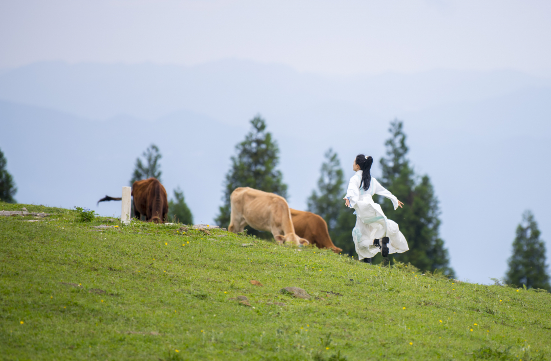 “和风吹在脸上,沐浴在清晨的阳光里,这感觉好惬意,简直就是贵州版‘阿勒泰’!”7月14日,在盘州市乌蒙大草原,来自江苏的游客黄诗惠和朋友,旅拍、爬山、野餐,一行人玩得忘了归期。