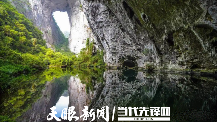 天印山的草坡上,牛群在巨型天坑边悠闲啃草。真正的奇迹藏在龙宫附近的秘境——当溶洞天坑与地下河倒影重合,一个震撼的“孙悟空侧颜”赫然显现!