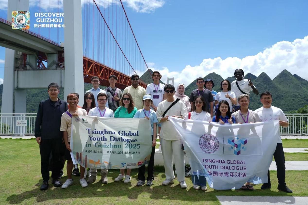 中外青年在坝陵河大桥前合影留念(图/周璇)