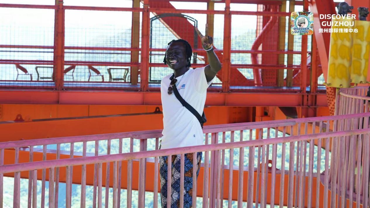 肯尼亚青年Nhial Deng在坝陵河大桥内游览(图/周璇)