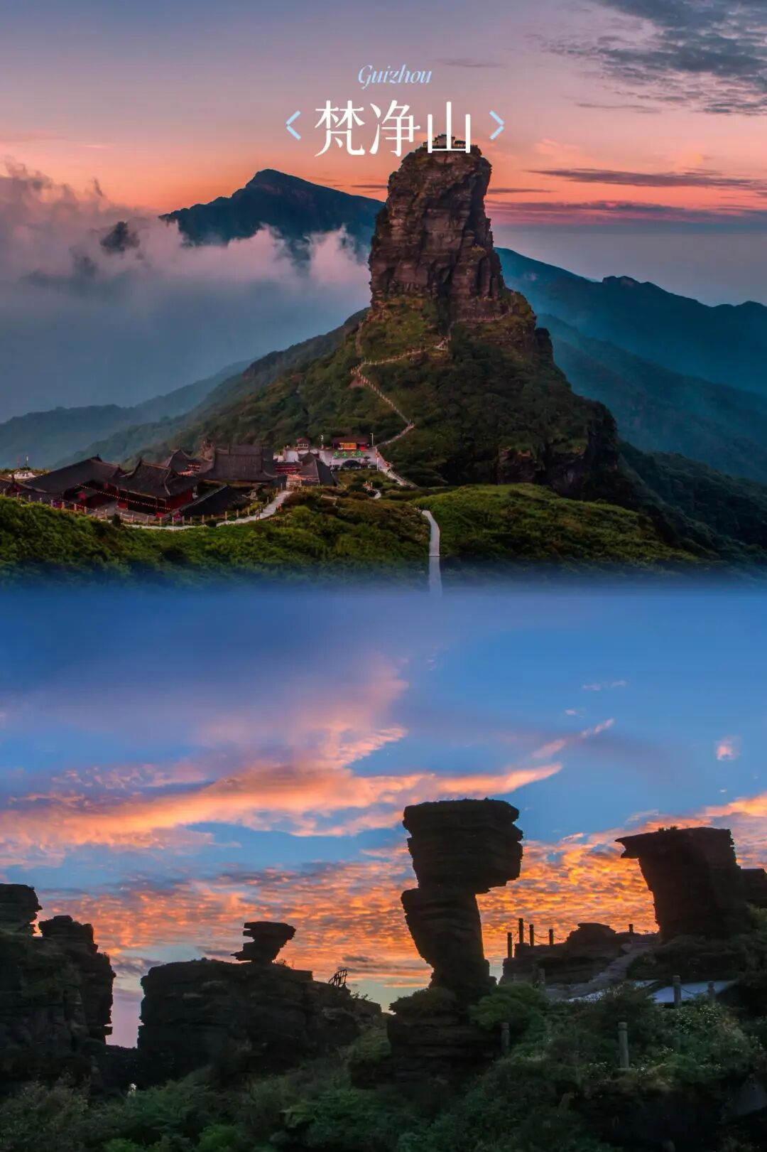 从镇远古城前往梵净山约2.5小时。这里是天空之城梵净山,钟灵毓秀、遗世独立。红云金顶、蘑菇石、老金顶,每一个景点都是亿万年时间的见证。