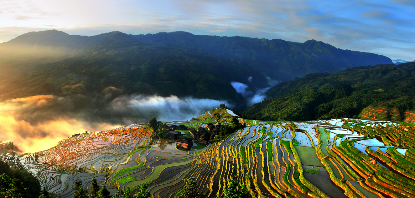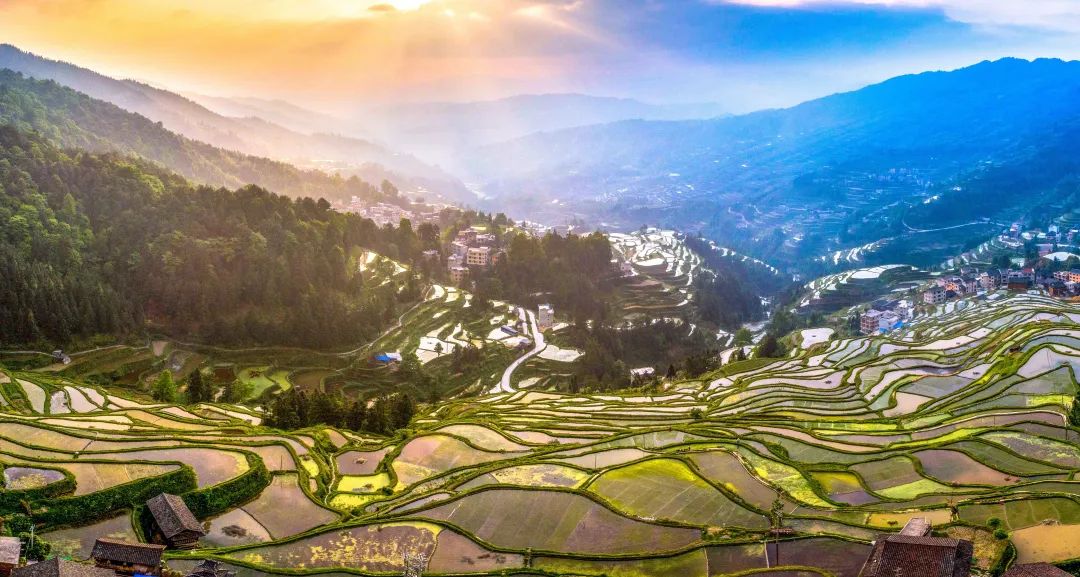 下午:徒步堂安梯田(肇兴-堂安7km轻徒步),傍晚拍梯田日落。