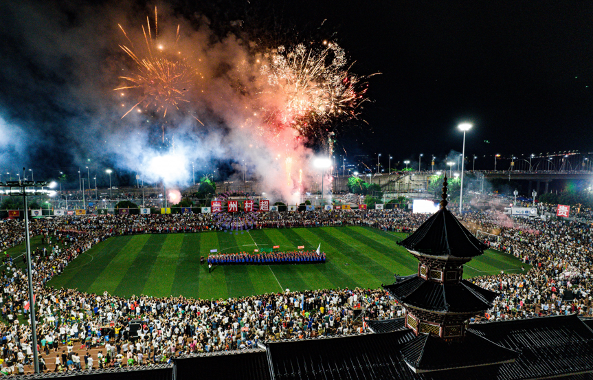 “村超”是指榕江县举办的“和美乡村足球超级联赛”,因火爆的现场氛围和“接地气”的办赛风格引发全网围观,网友们参照“英超”“中超”等命名,形象地将乡村足球超级联赛称为“村超”。20支群众自发组成的球队,每场比赛数万现场观众,以及上千万的直播观看人数,用激情和欢呼,点燃了这个盛夏之夜。来自全国各地的球迷到这里“打卡”,一起感受这场热闹壮观的足球盛宴。足球精神与榕江敢于拼搏的奋斗精神融合在一起,深深的扎下了根。“村超”也被央视报道称为“中国式现代化实践的生动诠释”。