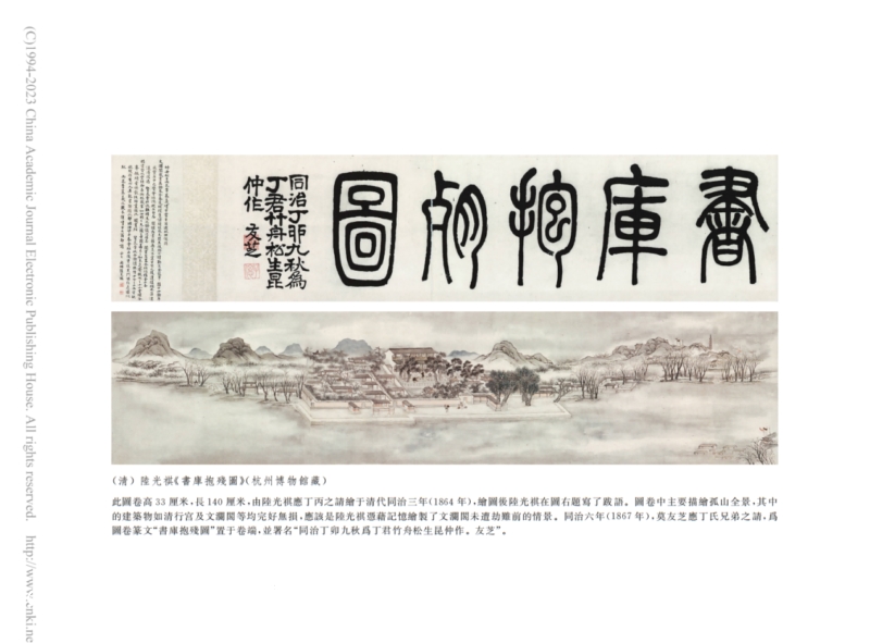 (清)陆光祺绘莫友芝题《书库抱残图》(杭州博物馆藏,原载《浙江省立图书馆月刊》1932年第7-8期)