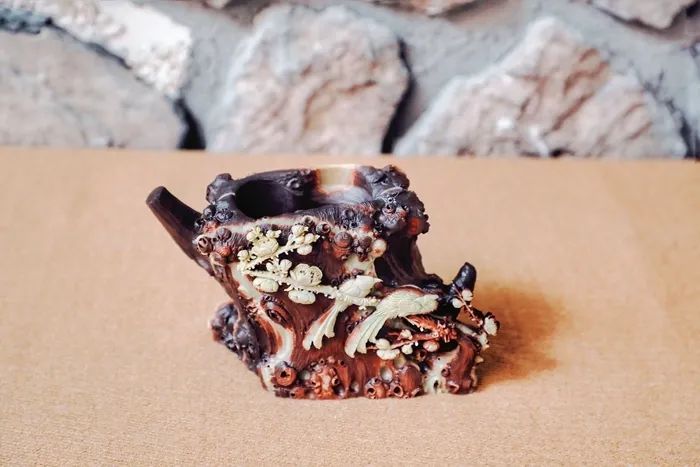 在刚刚结束的2022多彩贵州旅游商品大赛中,一件精美绝伦的紫袍玉带笔筒从众多旅游工艺品中脱颖而出,荣获银奖。这个笔筒的创作者,就是“胡一雕”创始人胡家文。
