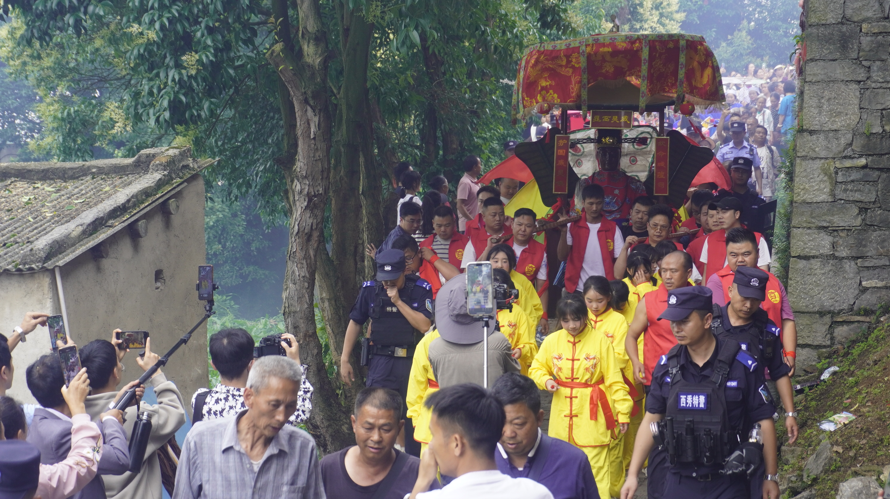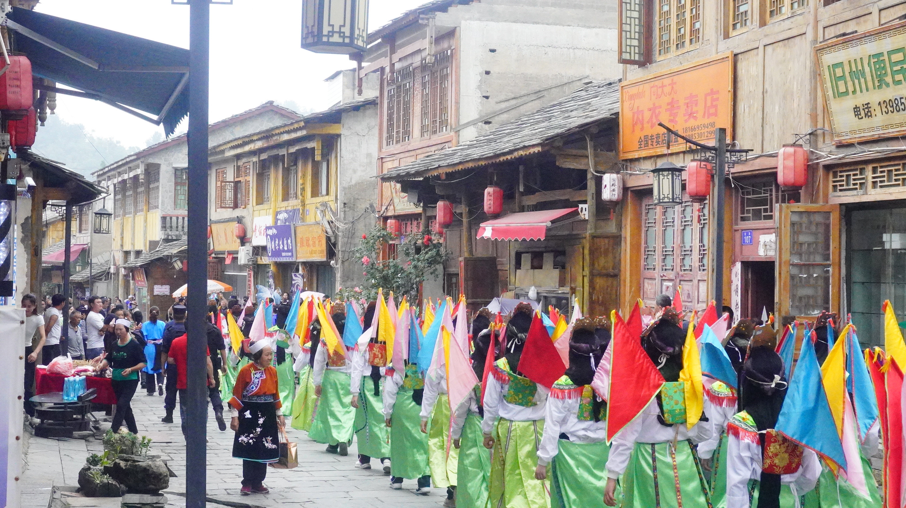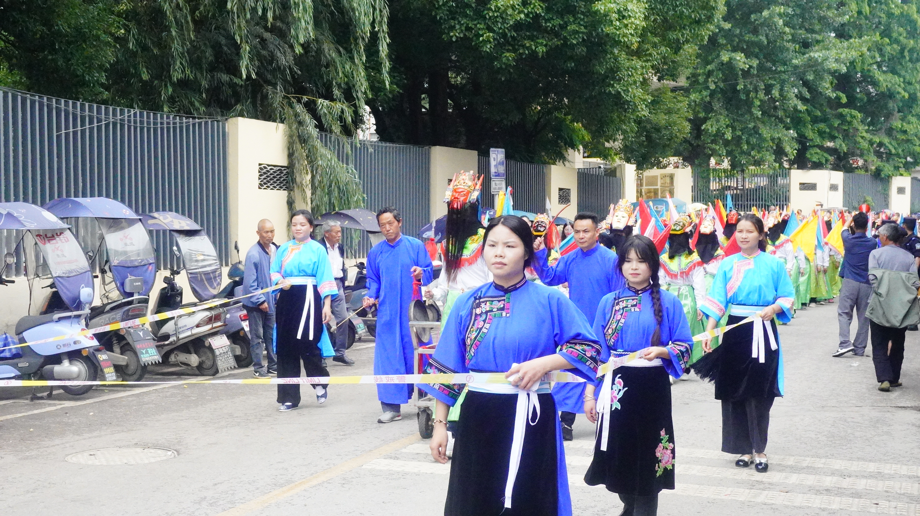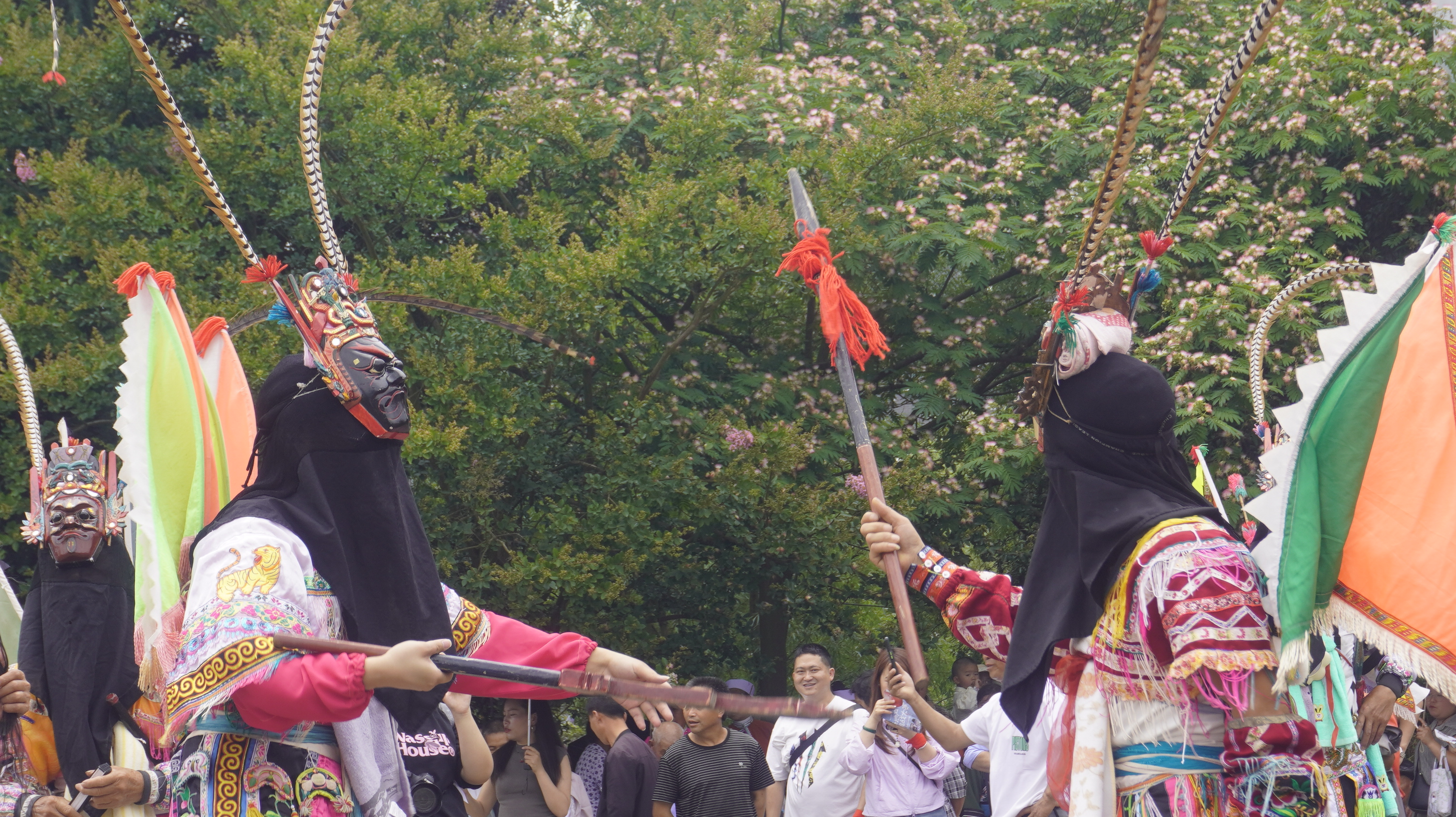 当天下午,随着喧腾的锣鼓声响起,浩浩荡荡的抬城隍巡游队伍穿梭于旧州古镇的街巷之间。同时,传统表演轮番上阵,共同展示出一幅生动绚丽的民俗画卷。