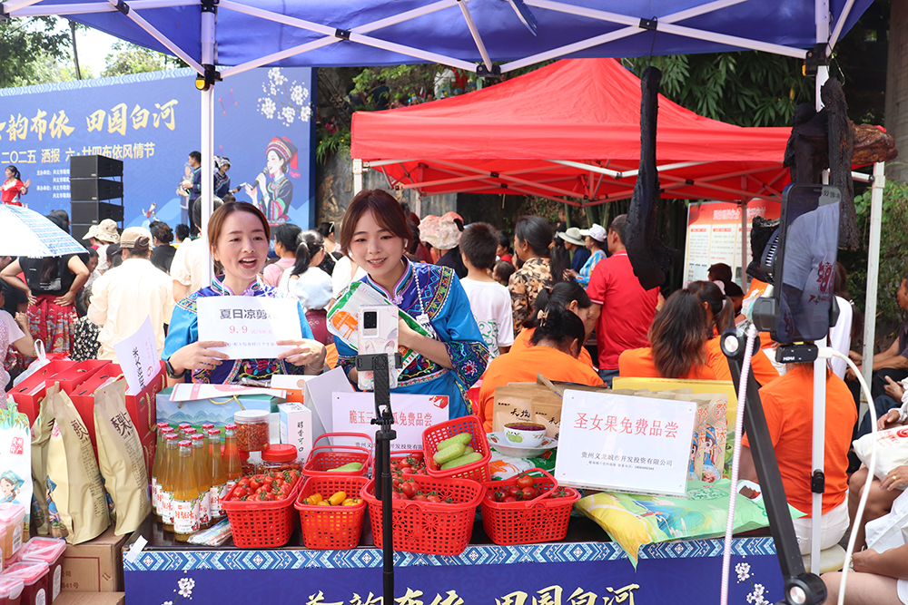 “‘六·廿四’布依风情节是白河村一年一度的民族节日,通过展示布依族非遗、歌舞表演、篝火晚会等活动,既是对民族文化的集中展示,也是推动乡村振兴的重要契机。活动现场设置农特产品直播间,借助文旅融合与电商平台,带动当地经济发展,提升村民幸福感。”敬南镇白河村党支部副书记吕元付介绍道。