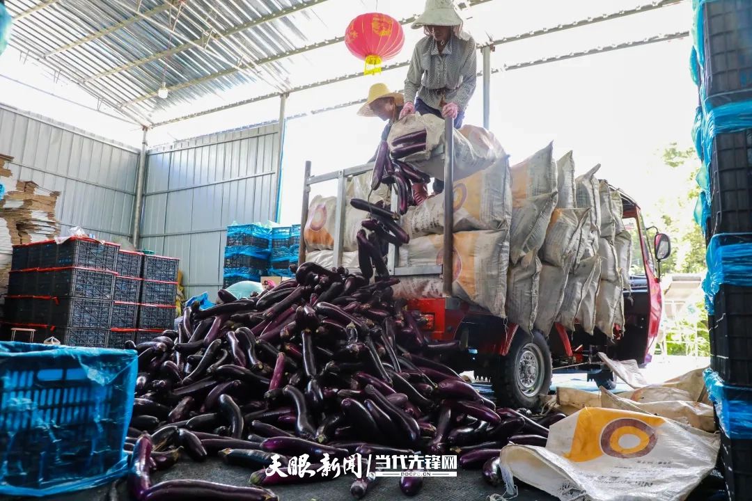 眼下,贵州省都匀市平浪镇凯酉村的茄子迎来了丰收,农户们趁着晴好天气,采摘茄子并搬运、装车,随处可见农户们忙碌的身影。