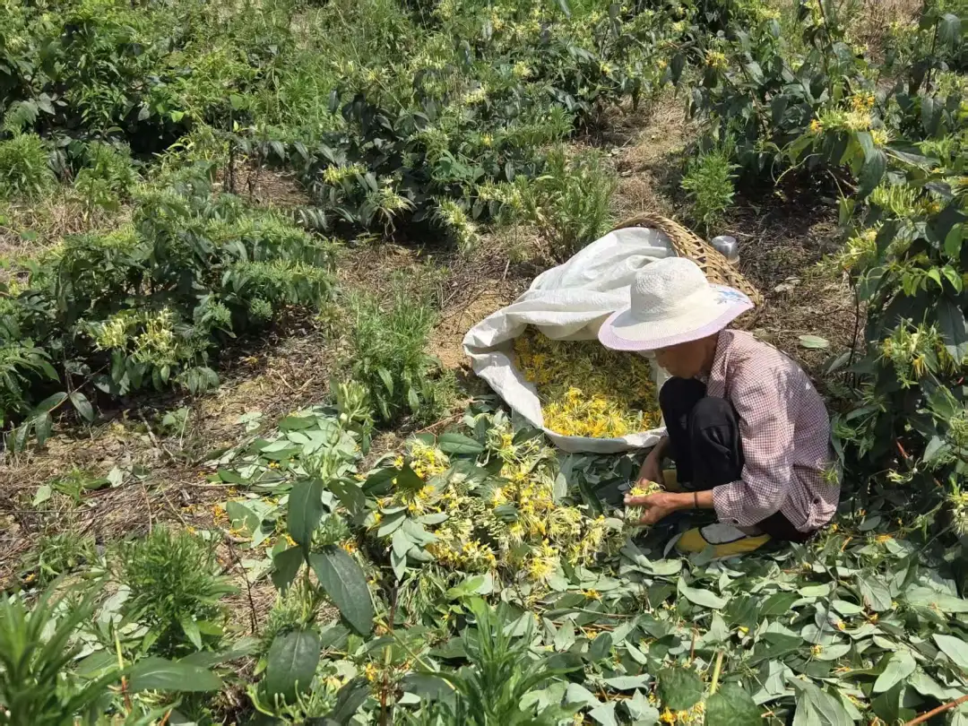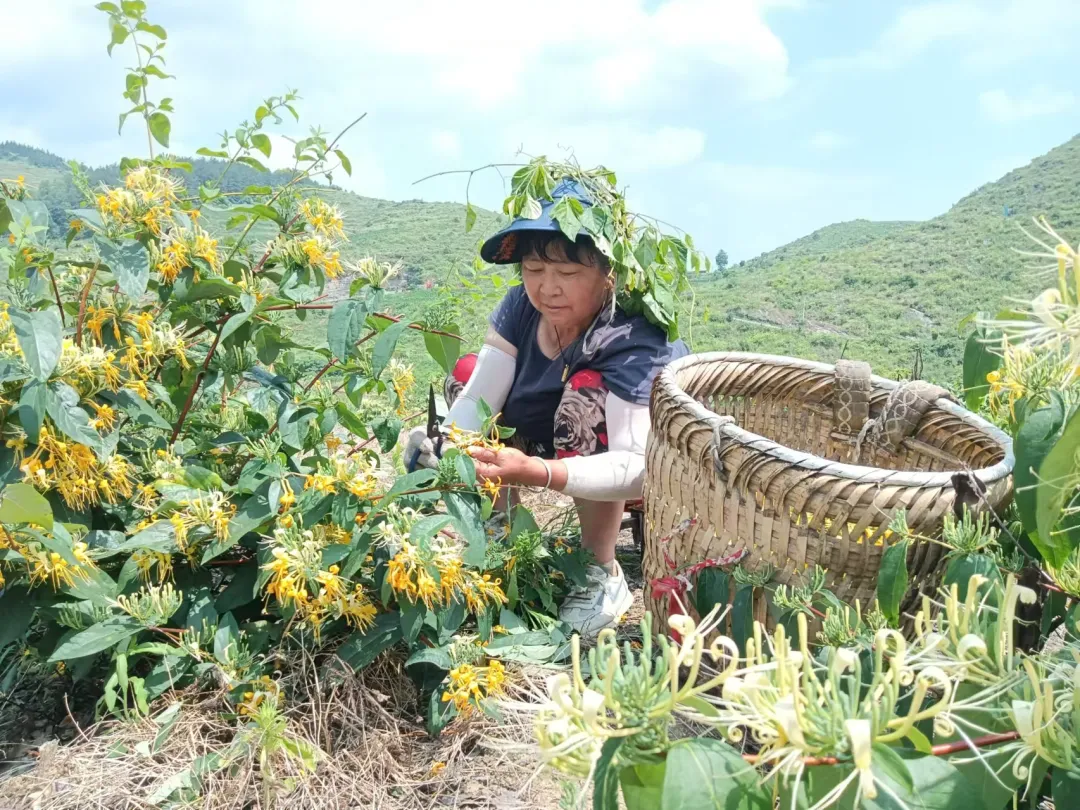 近日,黄杨镇天坪村山银花中药材基地,600余亩山银花正值采收期,枝头花簇醒目,空气中弥漫着淡淡清香。村民们穿梭于花田间,灵巧地采摘花朵,呈现出一派繁忙的劳作景象。