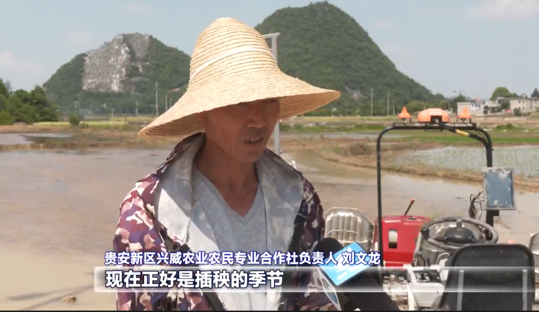 贵安新区兴威农业农民专业合作社负责人 刘文龙:现在是插秧的季节,我们从五月初就开始插秧,采用机械加人工的模式,我们合作社准备了3台插秧机,我们还在小田块开展人工插秧,现在坝区一天有五十多人。