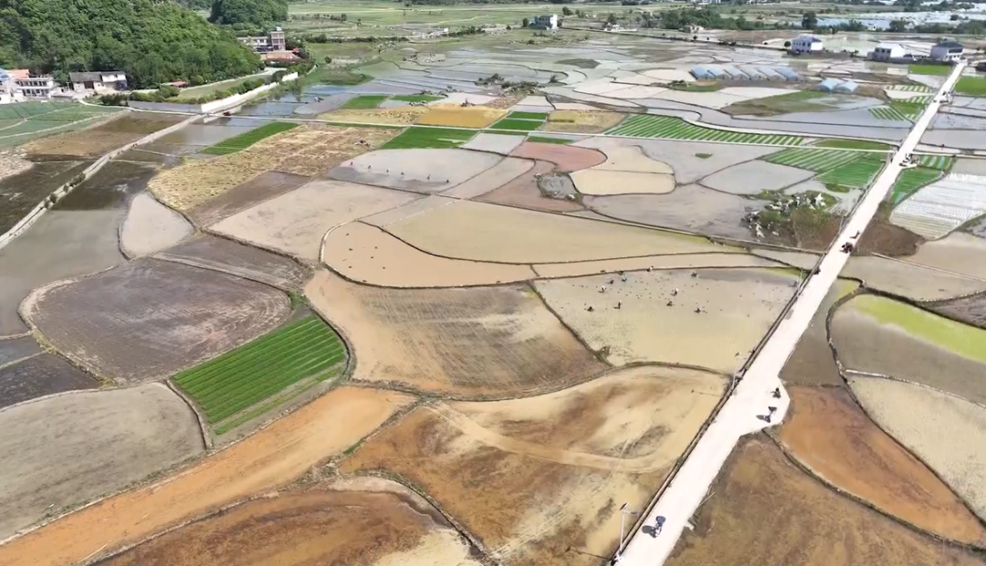 初夏时节,贵安新区龙宝村3163亩责任田里,农机手正驾驶着插秧机在田间匀速推进,机械臂精准投放秧苗,所过之处,一行行秧苗如绿线般整齐铺展。