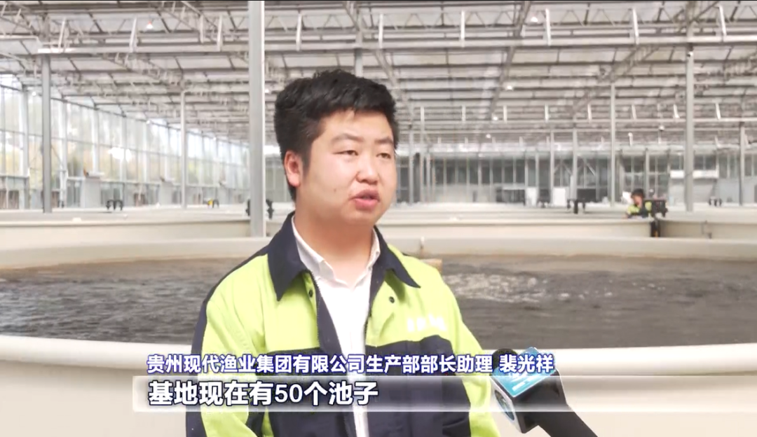 贵州现代渔业集团有限公司生产部部长助理 裴光祥:我们基地现在有50个池子,1个有70个立方,计划一个池子产7000斤鱼,我们这里将近有88万尾鱼苗,在今年的六、七月份就可以出售了,大概有15万尾,差不多有15万斤。