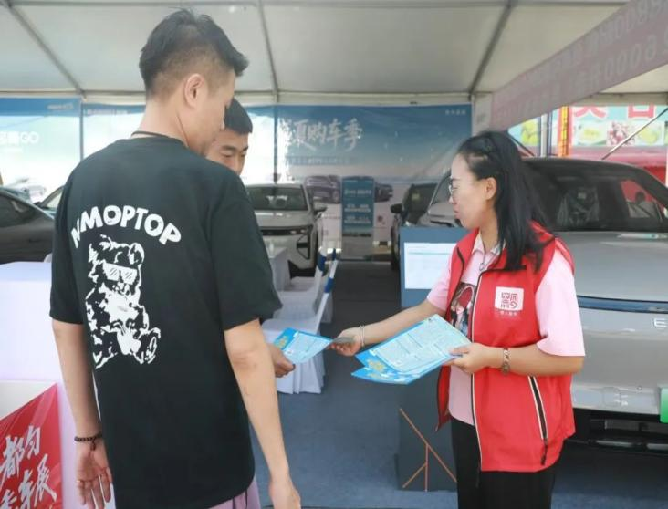 活动期间,涉企服务部门工作人员聚焦企业和群众需求,围绕车辆促销、融资贷款、就业创业、税费减免等政策进行宣传介绍,让车企和消费者对政策有了更深入的了解。前来看车的张先生表示,“没想到会有工作人员来到现场宣传政策,之前想要了解的就业创业这方面的优惠政策,今天刚好可以现场咨询,对以后打算创业的我来说很有帮助”。通过联动部门聚焦企业需求,主动靠前、强化联动,形成了服务合力,在活动现场为企业群众提供咨询答疑、申报指导等服务,推动惠企惠民政策宣传有力、精准直达。