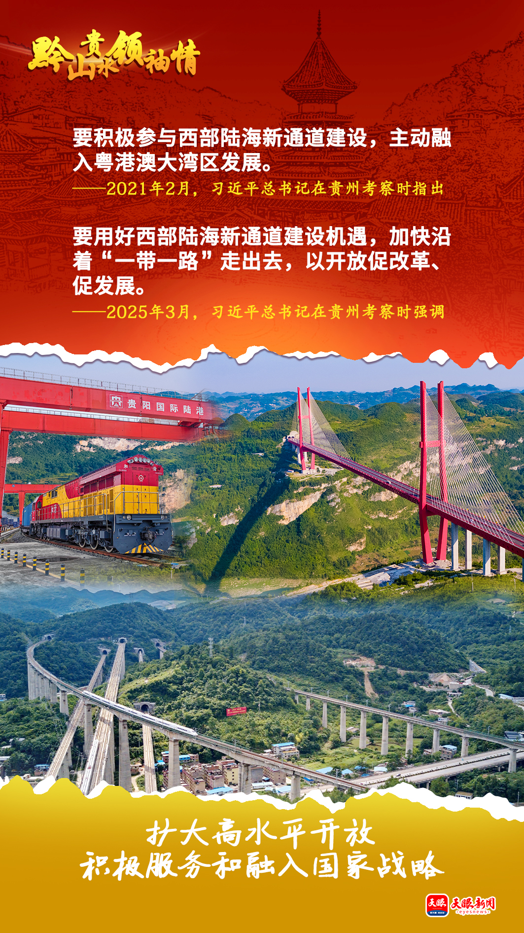 2021年2月,习近平总书记在贵州考察时指出,要积极参与西部陆海新通道建设,主动融入粤港澳大湾区发展。2025年3月,习近平总书记在贵州考察时强调,“贵州要用好西部陆海新通道建设机遇,积极对接粤港澳大湾区、成渝地区双城经济圈建设,主动融入陆海内外联动、东西双向互济的全面开放格局。”
