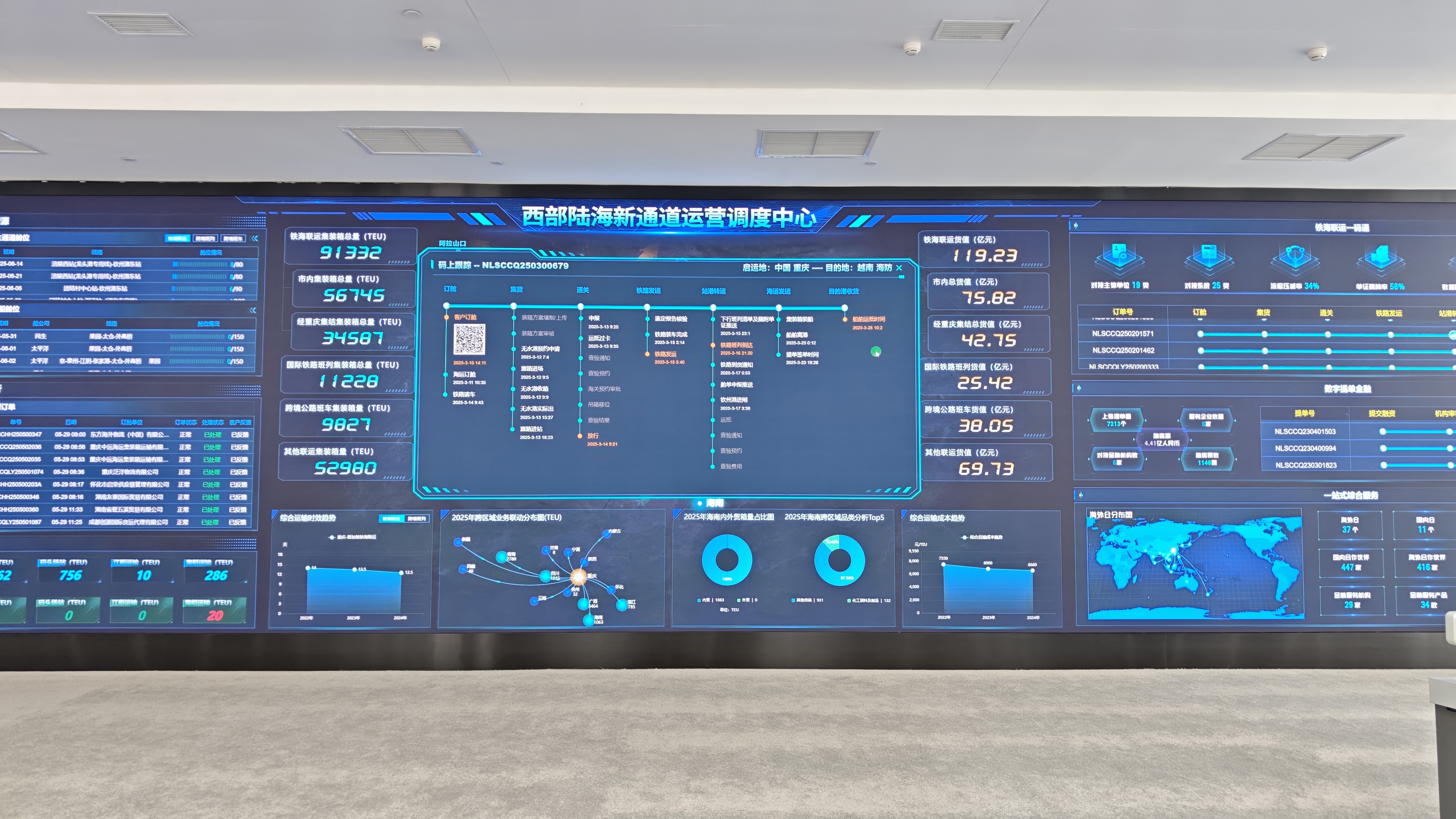 5月29日,记者走进西部陆海新通道重庆无水港运营调度中心,大屏幕上一串串跳动的数字映入眼帘,意味着在这里,管理者可实时查询沿线各地铁路、港口等信息,对沿线省(区、市)的货源、船期等进行调配,实现资源优化配置。