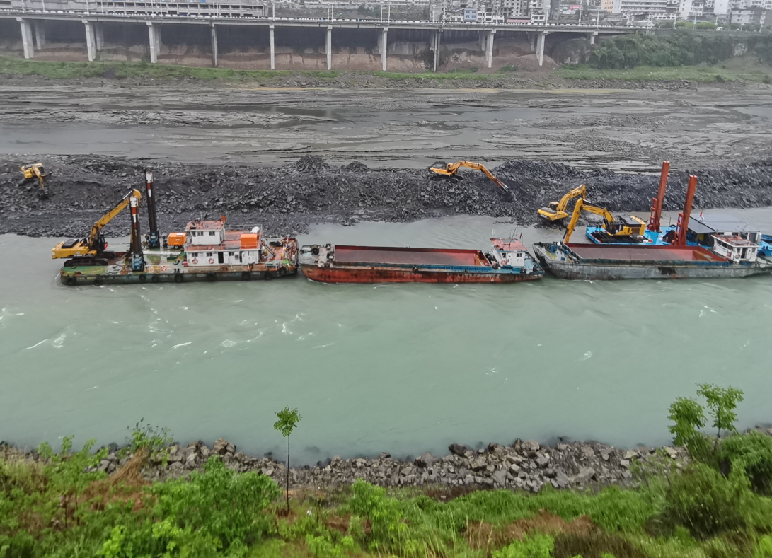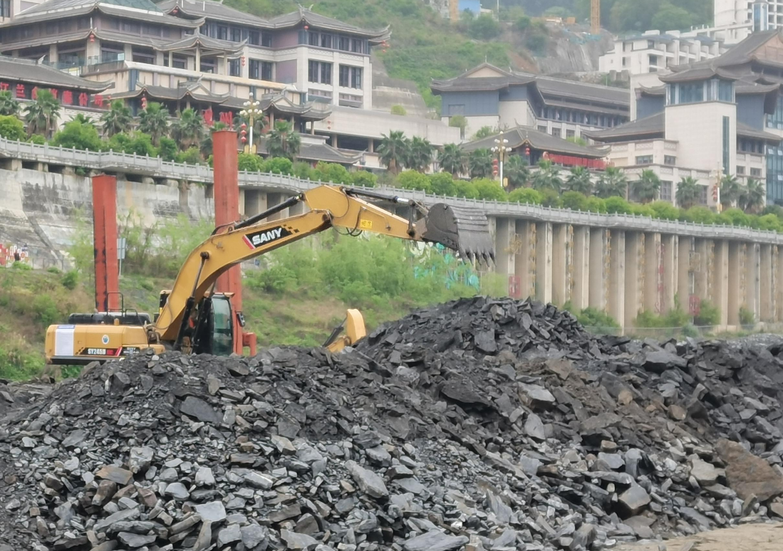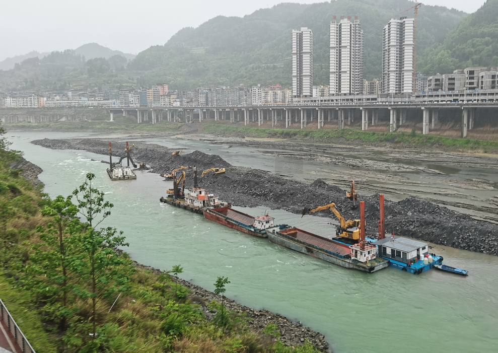一元复始,万象更新;潮起乌江,风帆正劲。春临沿河,乌江水运再次迎来发展春天。连日来,在沿河自治县县城乌江猫滩一带,停着数艘施工船,船上机器轰鸣,正对猫滩的礁石进行破碎,岸边10多台挖掘机忙着对礁石进行清理疏浚。工地上乌江奔流、机器忙碌,如火如荼。乌江两岸,沿河县城高楼林立,绿树成荫,车辆行人往来穿梭,春裁底色,满是无尽的生机与活力,繁忙的施工场景与恬美的沿河县城形成了美丽的春天画卷。