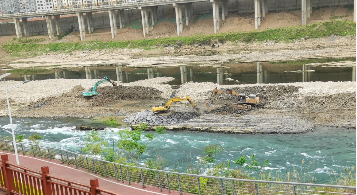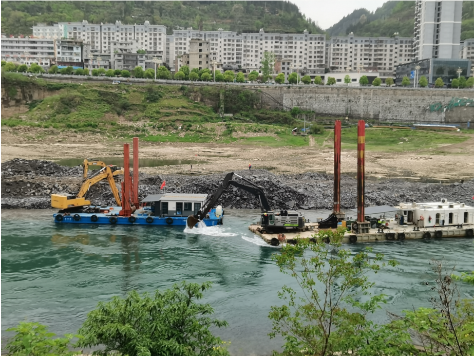 经现场了解得知,正在施工的是乌江航运扩能工程乌江渡-龚滩三级航道建设工程项目,该项目由贵州省交通运输厅组织实施,于2024年12月2日开工建设,按内河Ⅲ级航道通航1000吨级标准船舶整治乌江干流(乌江渡—龚滩)407公里,和清水河支流(洛旺河码头—清水河河口)24公里航道,航道通航里程431公里,其中铜仁境内乌江干流247公里。工程概算总投资90824.01万元,施工期为3年。