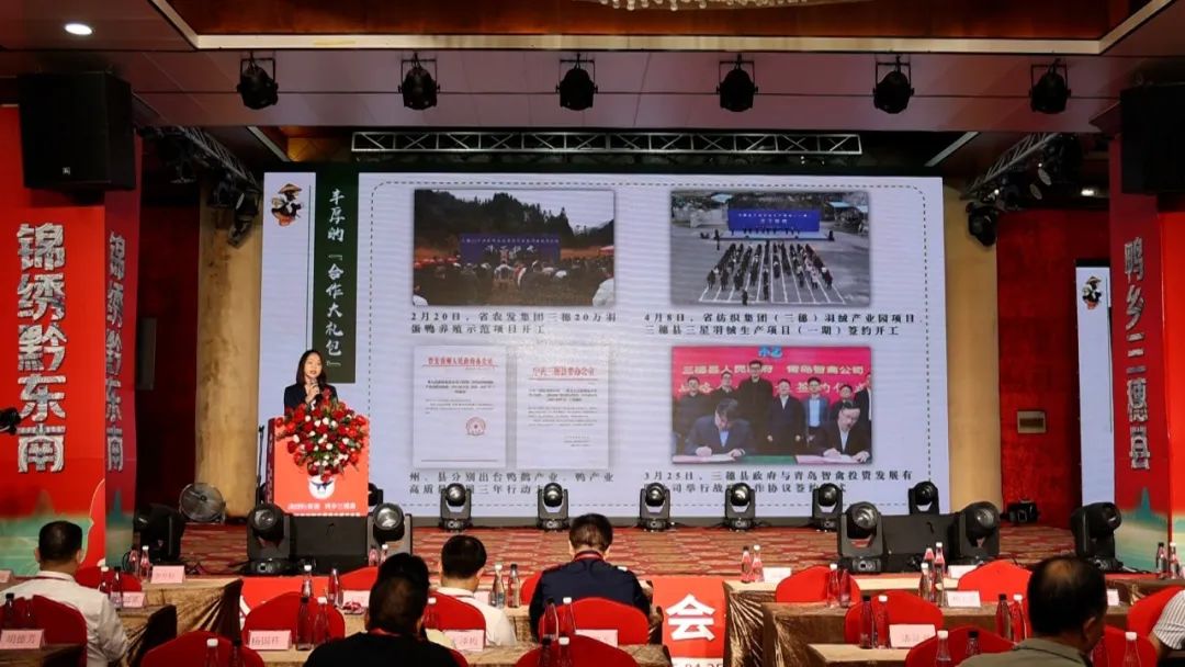 大会现场,来自广东、贵州的领导嘉宾分别为商会授牌,并举行慈善捐赠和签约仪式。三穗县领导就三穗县生态环境、区位优势、营商环境及三穗鸭的独特风味、产业优势等作项目推介。