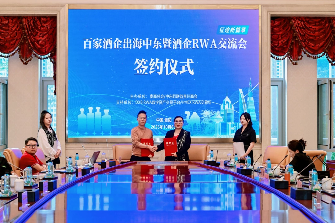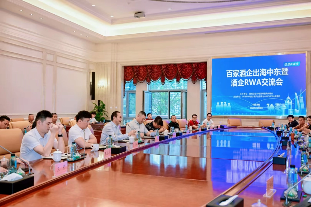 近日,“百家酒企出海中东暨RWA交流会”在贵阳博央艺术国际交流中心白宫六楼顺利举行。来自贵州各地的酒类企业代表、行业专家及贵州商会、中东阿联酋贵州商会等机构代表近百人齐聚一堂,围绕贵州白酒拓展中东市场路径与RWA(真实世界资产)技术赋能产业发展展开深度交流,为黔酒国际化与数字化转型注入新动能。