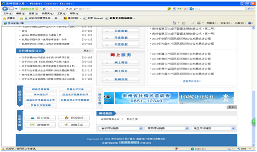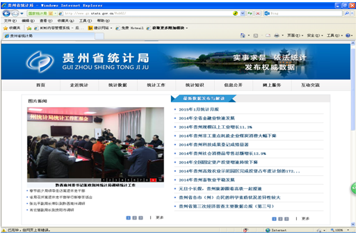 2014年5月,适应新形势、新任务、新要求,我局新改版的门户网站上线运行。新的门户网站的建设以适应《工作要点》为基准,以服务信息公开为目标,设立信息公开专栏,主动公开工作指南、公开统计法律法规、公开涉外调查许可等等;设立多个专栏展示统计特色,向公众提供大量统计信息、统计分析、统计数据、统计公报(如下图所示)。以门户网站为平台对外主动公开政务信息和经济信息,切实推进我局政府信息公开力度,丰富公开内容,提升统计服务实效,使我局信息公开工作迈上一个新台阶。
