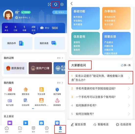 若是实名认证提示“验证失败,请检查输入信息”怎么办?不慌,同样在“我的”板块,选择“客服中心”进入页面,滑动页面至底部“大家都在问”专栏,点击第一个问题咨询即可获取解决方法。