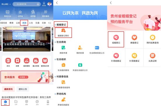 幸福人生,美好伊始。让数据多跑路,让群众少跑腿。“中国·贵州”上线婚姻登记服务,办理婚姻登记业务可提前线上预约,更有婚姻信息在线申报功能,让您省时省力省心,轻松开启幸福人生新篇章。