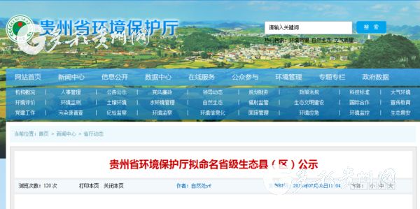7月2日,记者从贵州省环保厅获悉,经核查评定,遵义市播州区达到省级生态县(区)建设标准,拟对该区进行“贵州省省级生态县”命名。