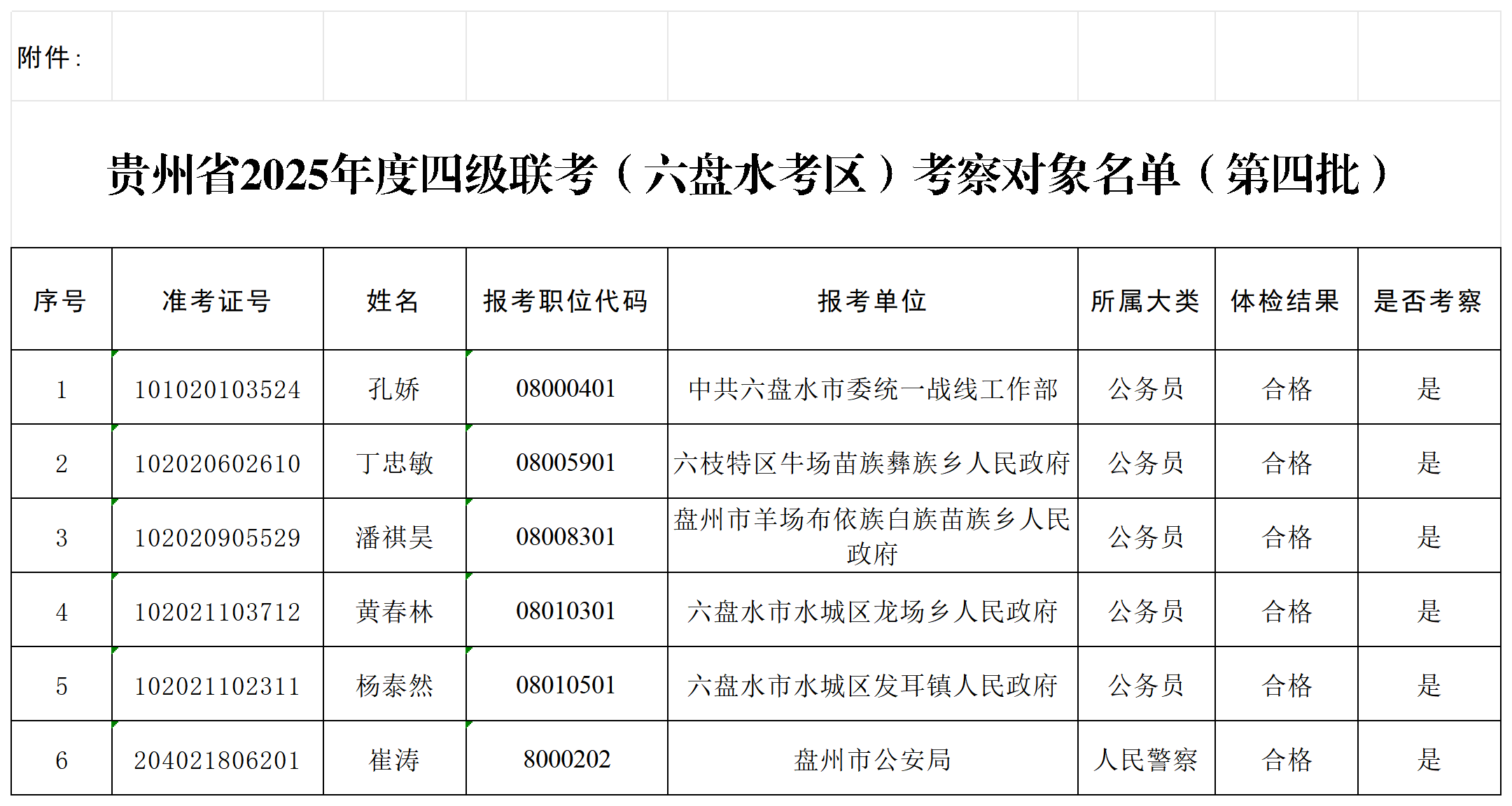 附件:贵州省2025年度四级联考(六盘水考区)考察对象名单(第四批)