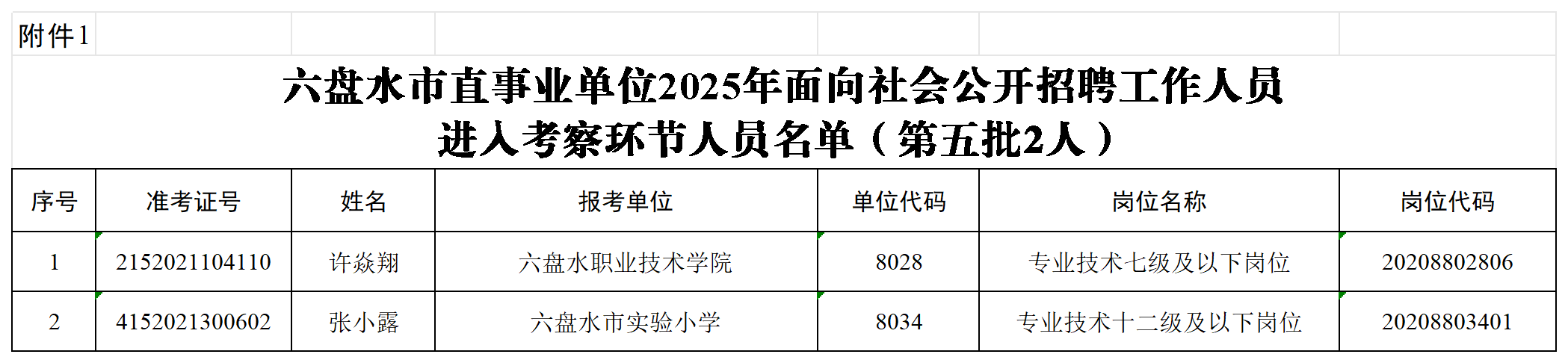 1.六盘水市直事业单位2025年面向社会公开招聘工作人员进入考察环节人员名单(第五批2人)