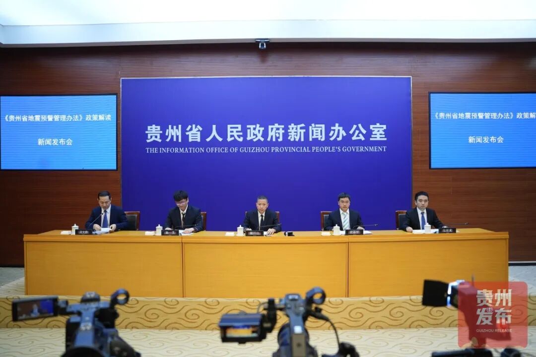 贵州省人民政府新闻办公室于2024年12月4日(星期三)10时举行《贵州省地震预警管理办法》政策解读新闻发布会,请省地震局副局长,新闻发言人梁开伦、省地震局监测预报与科技处(应急服务处)处长欧品智、省地震局震害防御处(公共服务处)负责人孙一男、贵州地震台副台长张秋寅出席介绍情况,并答记者问。以下为发布会图文实录。