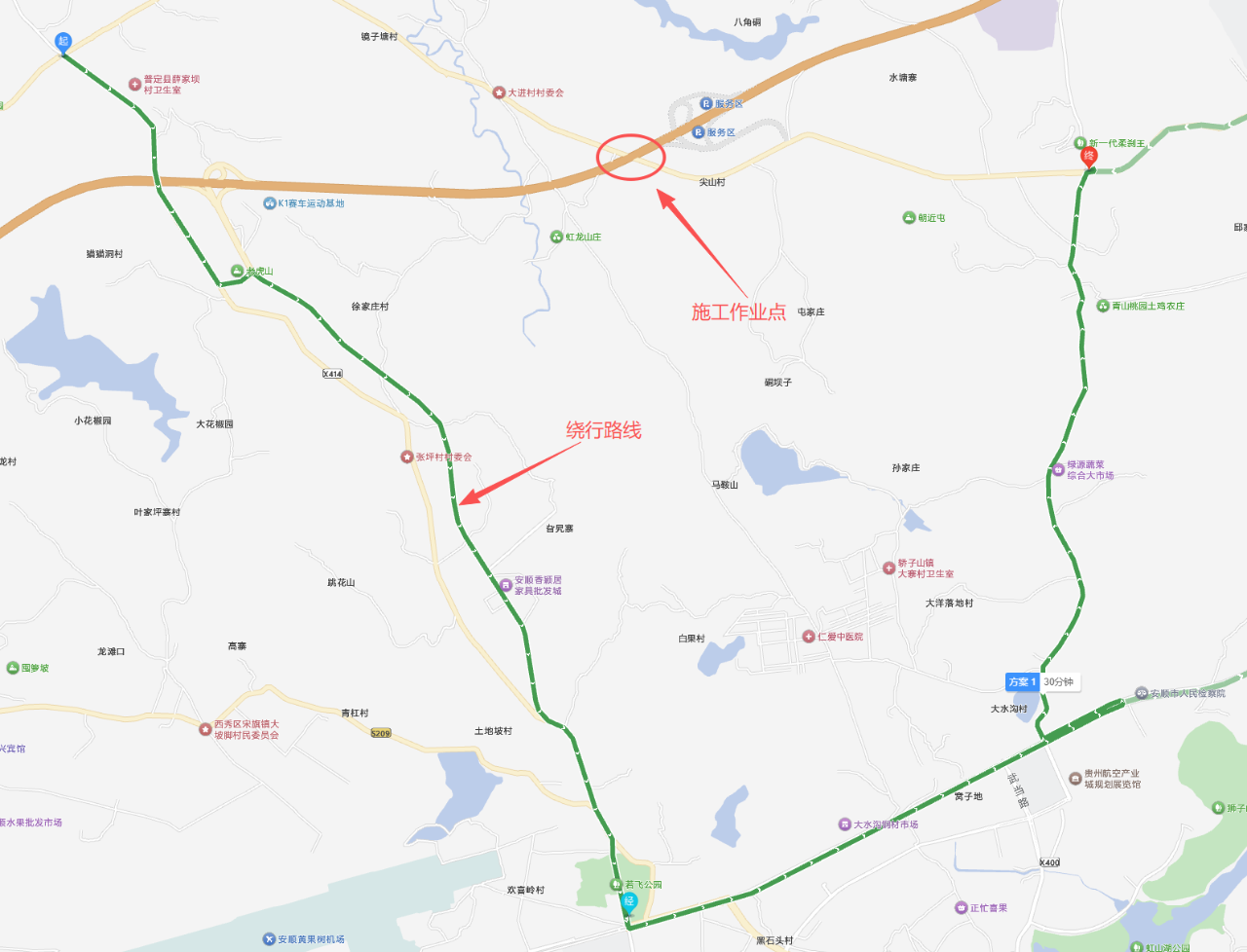根据沪昆国家高速公路贵阳至安顺段扩容工程施工计划,S03安顺绕城高速白岩至蔡官段上跨国道G321尖山分离式桥将于2025年10月18日实施拆除施工。国道G321受施工影响,将采取临时中断管控措施,社会车辆需绕行。现就施工期间相关事项公告如下:
