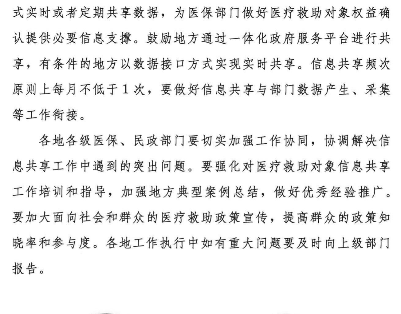 近日,国家医保局办公室、民政部办公厅联合印发《国家医保局办公室 民政部办公厅关于进一步做好医疗救助对象信息共享工作的通知》(医保办函〔2024〕99号)(下称《通知》),要求各地进一步做好医疗救助对象信息共享工作。现将《通知》转发给你们,并结合我省实际提出以下工作要求,请一并抓好贯彻落实。