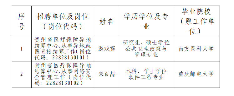 根据《贵州省医疗保障局所属事业单位2022年公开招聘事业单位工作人员方案》,经发布公告、报名、笔试、资格复审、面试及总成绩计算等程序并体检、考察合格,现将拟聘用人员名单予以公示。公示期间,如有问题,请向我单位反映。