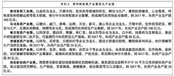 以贵阳为核心,发展壮大益佰、乌当、修文、清镇、龙里、贵安等医药产业园,建设“贵阳新医药产业圈”。加强园区配套设施建设,完善医药公共服务体系,重点引进国内外知名医药企业,聚焦重点项目,形成全国一流的新医药产业示范区。