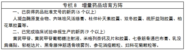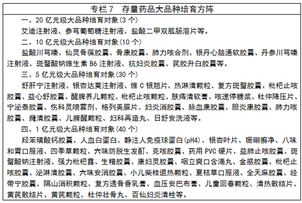——存量药品培育方阵。用4年左右时间,重点培育已获准上市的药品存量做强做大,优先扶持独家品种,基本形成大品种发展格局。